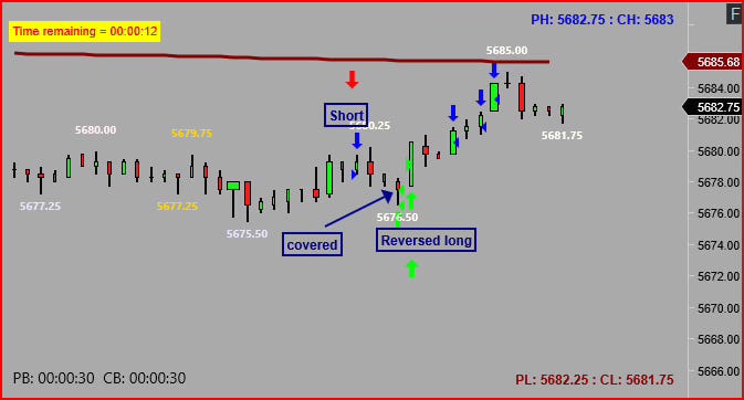 Here is a 30 seconds execution chart showing both trades executions for short & long setups.